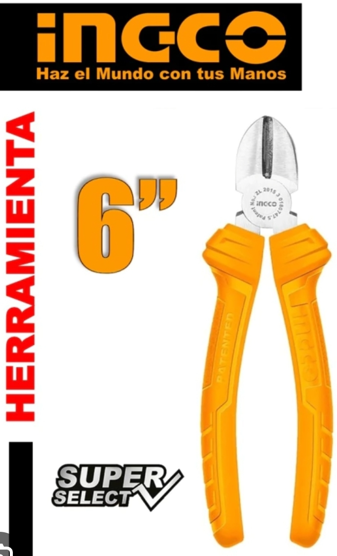 ALICATE CORTE DIAGONAL INGCO 6" (MANGO NARANJA)